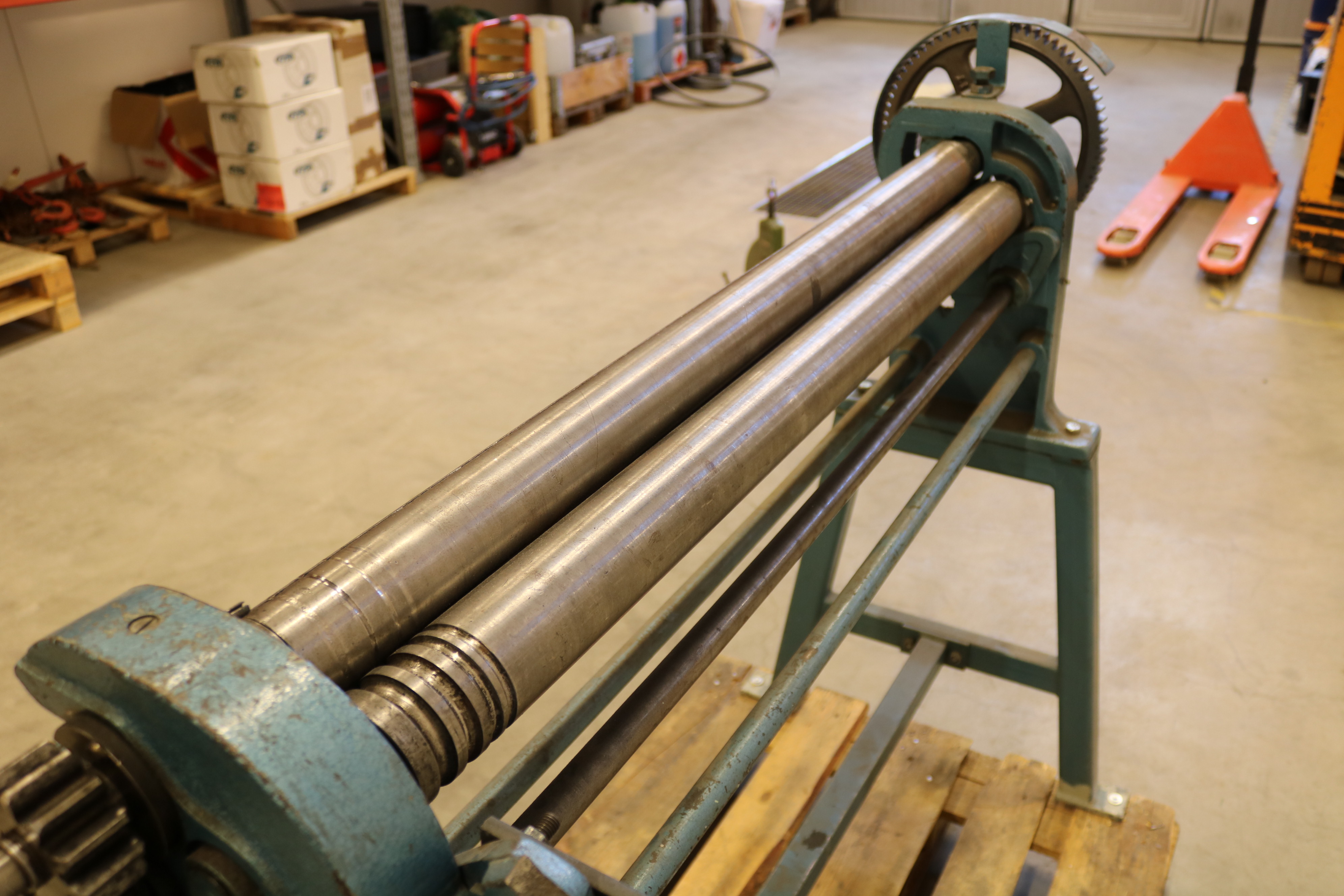 Stands on a full pallet with protrusions. approx. 25 cm on the short side.
