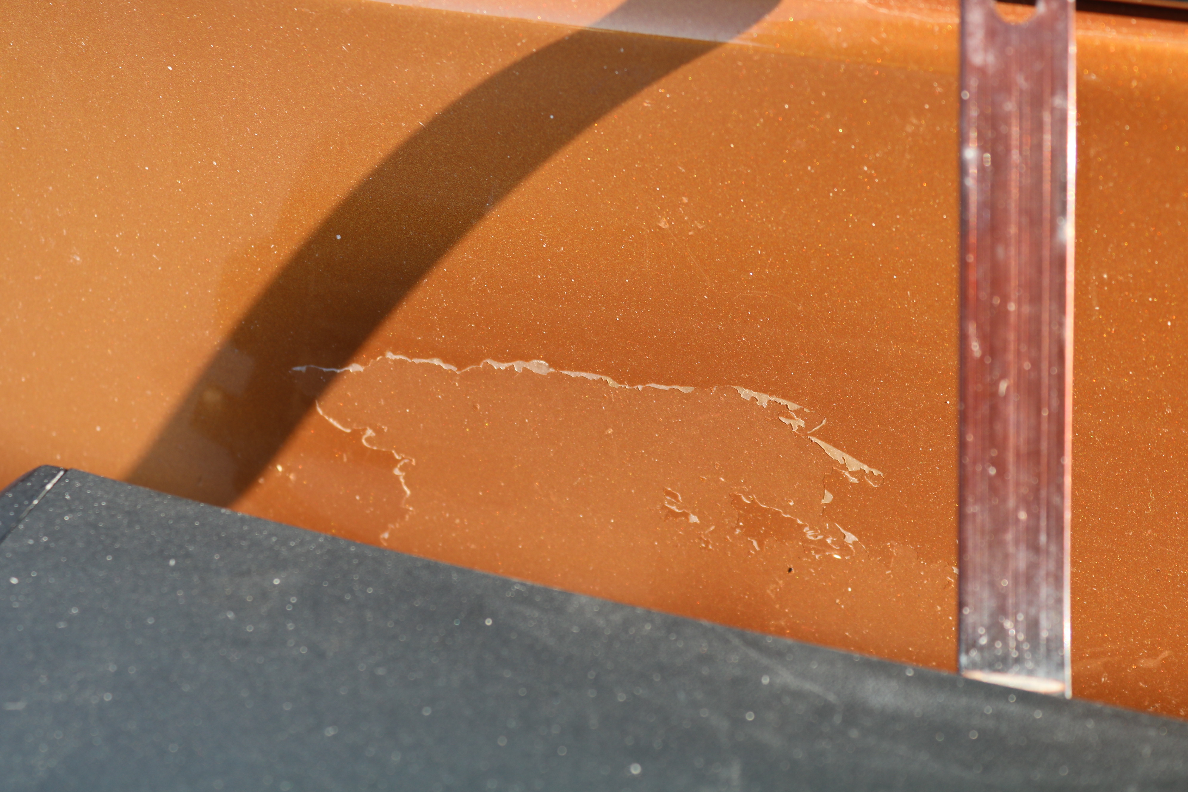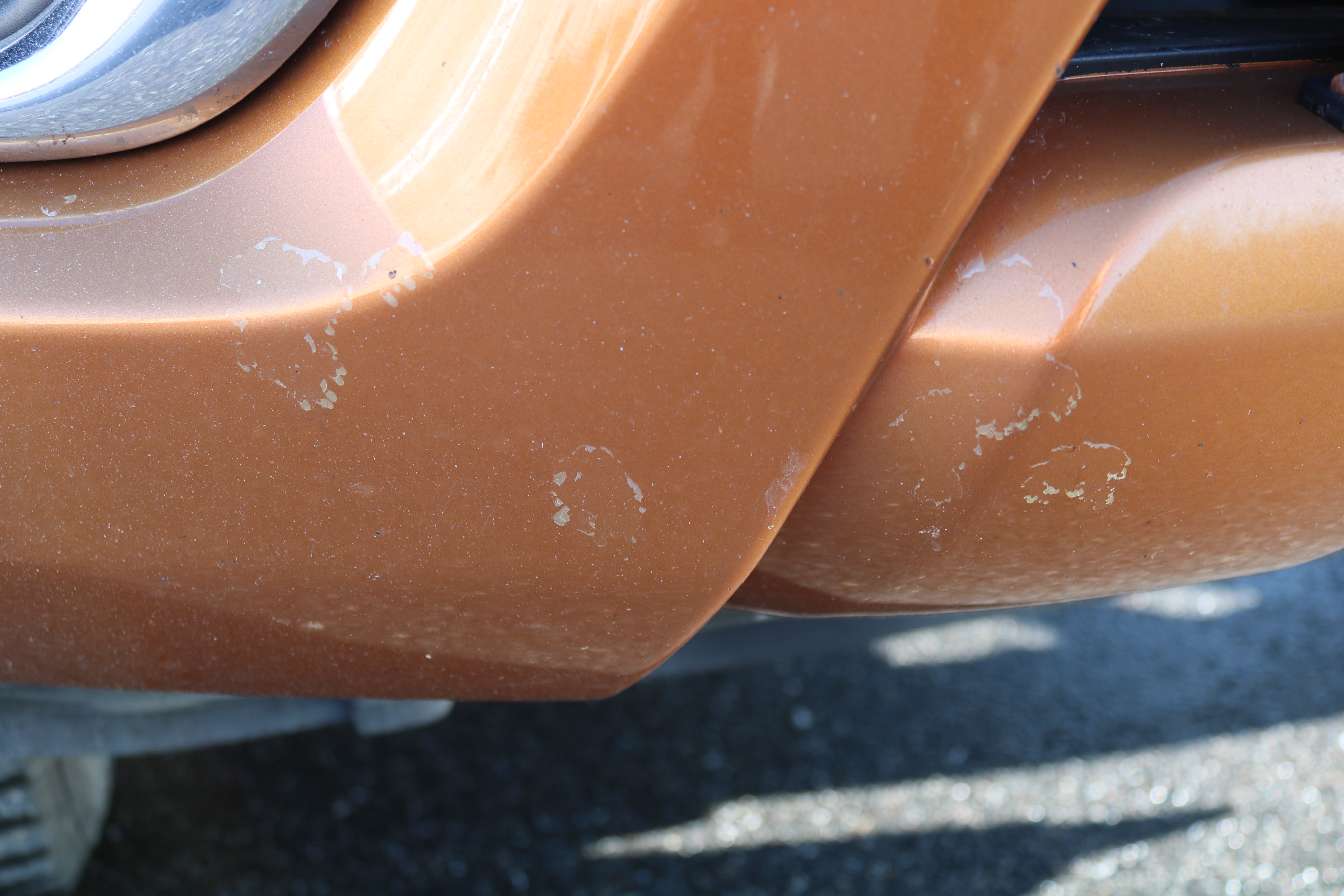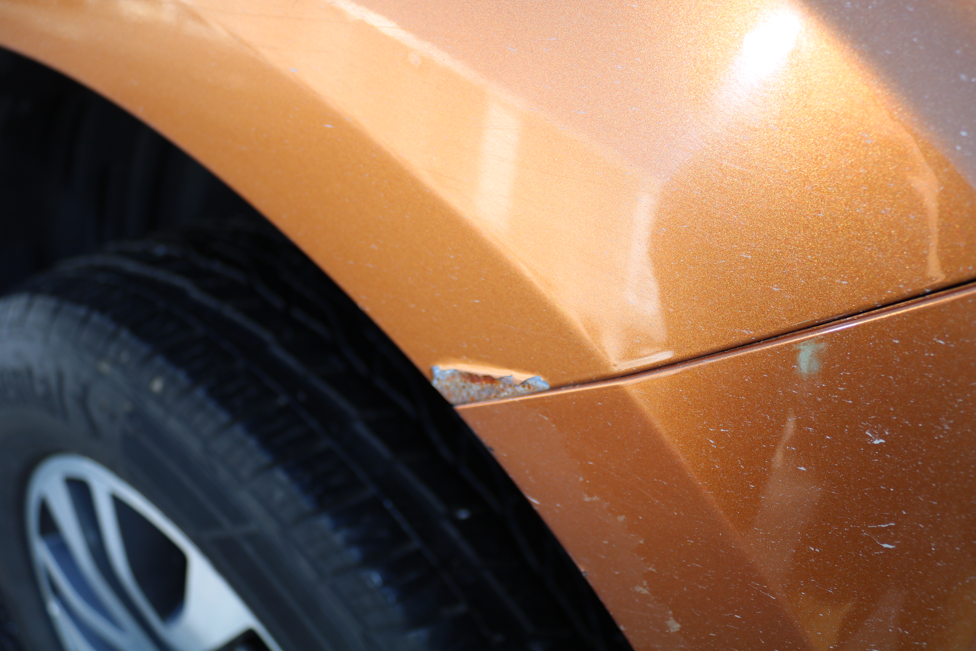 There are scratches, stone chips, surface rust, clear coat wear, paint wear, minor damage to dent and minor stone chips windshield/5-10 mm.