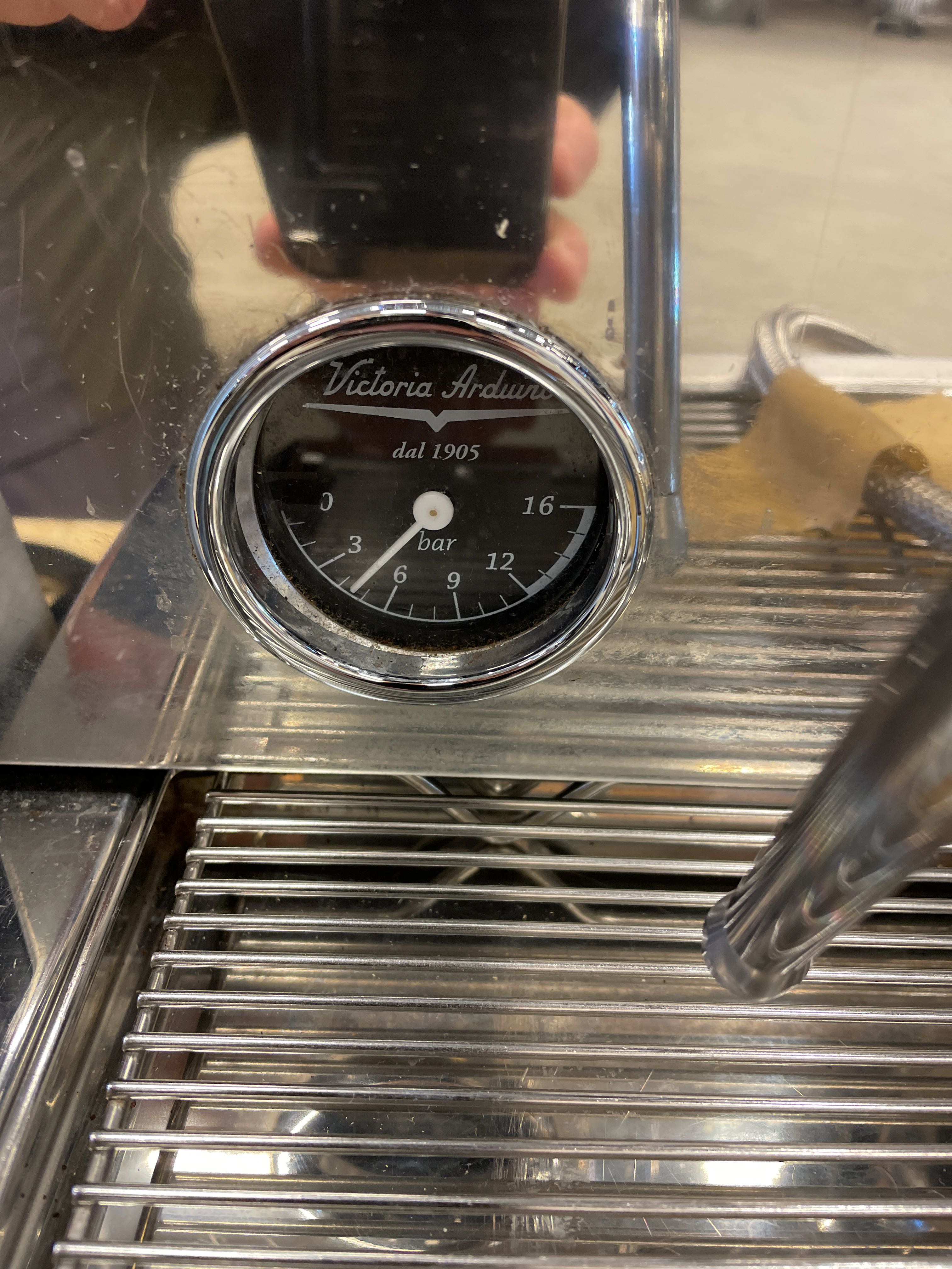 Espresso machine Victoria Arduino Black Eagle VA 388. It comes with several jugs, etc. Approx. Dimensions: W 85 cm x D 70 cm x H 49 cm.
