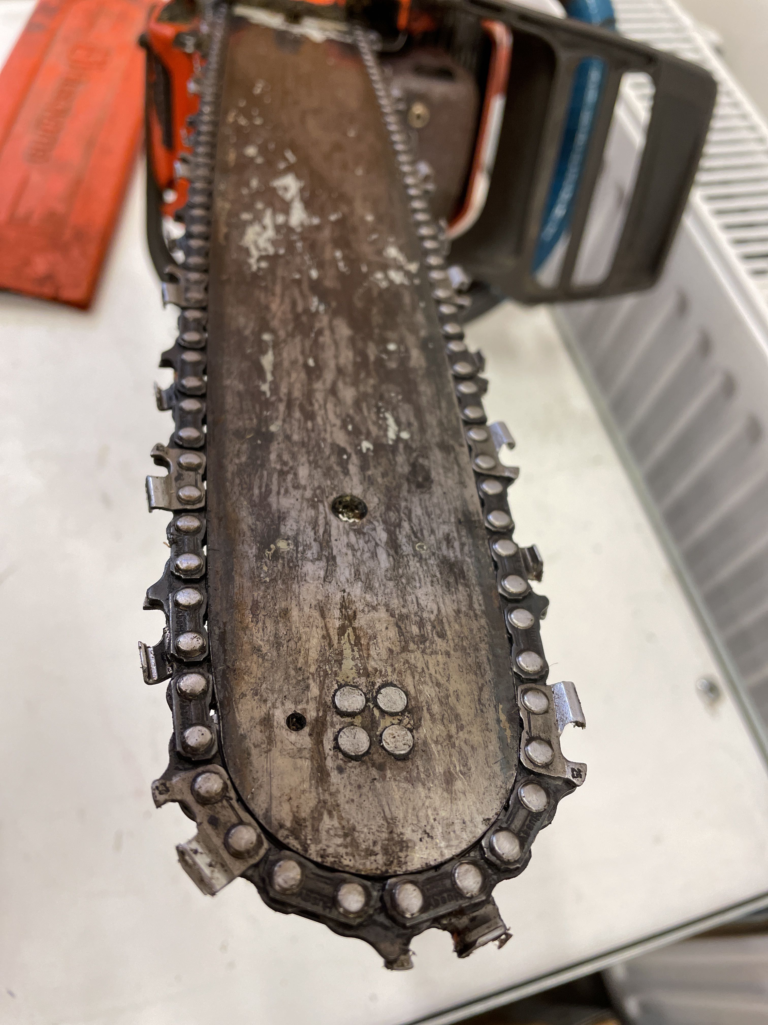 We have wiped away oil from under the chainsaw. Possible leakage